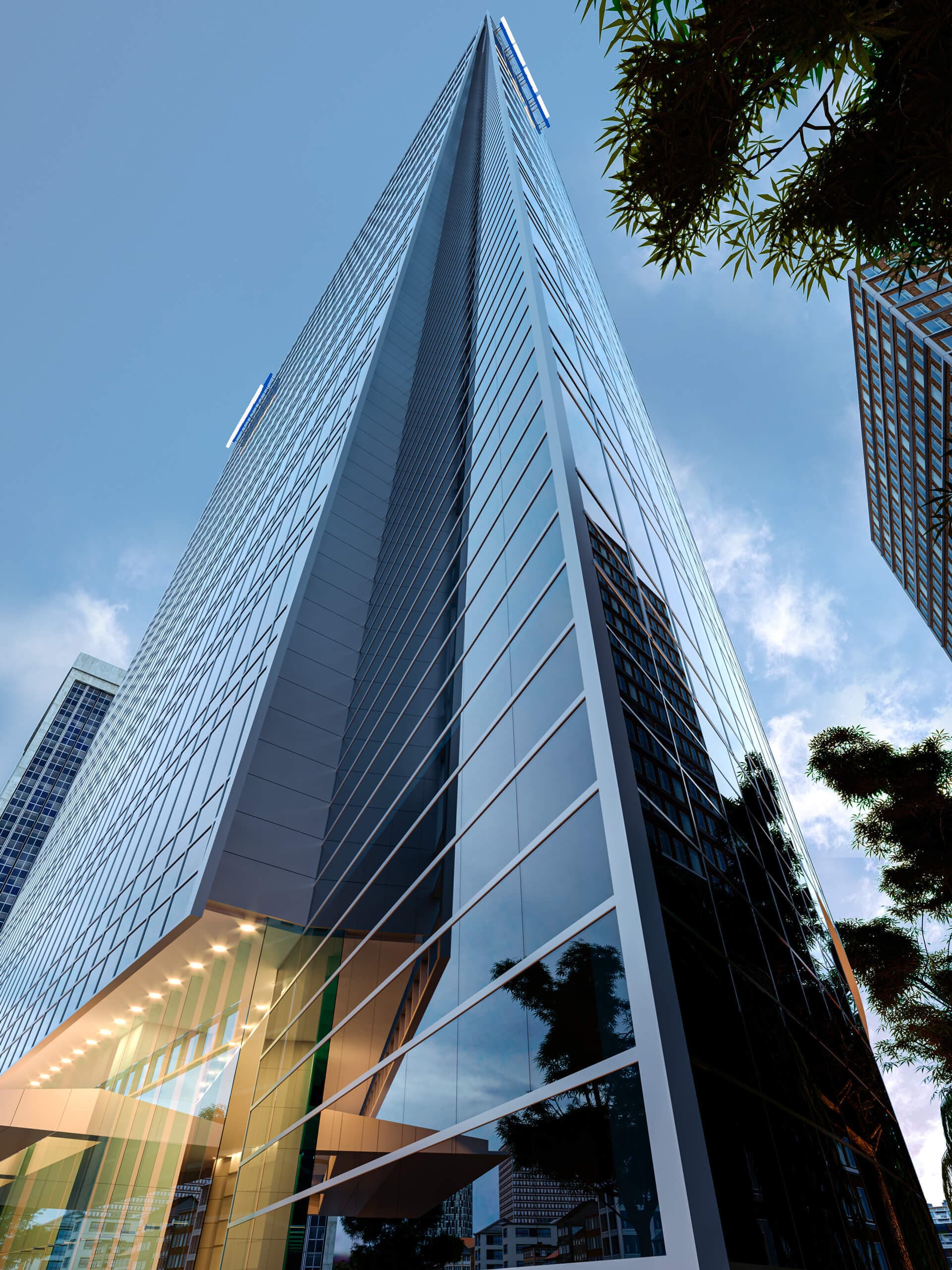 El diseño arquitectónico de esta Torre desde su inauguración es simplemente espectacular, los pequeños quiebres que rompen la uniformidad de la fachada principal hasta las formas orgánicas que conforman el lobby interior.